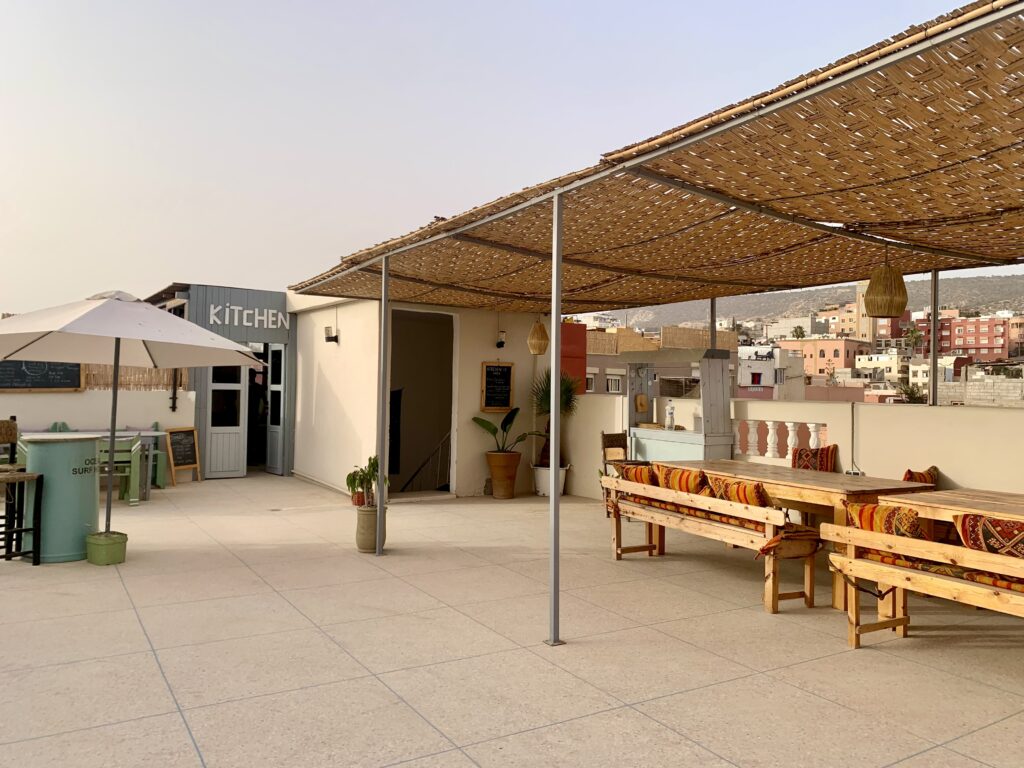 You will stay in our modern moroccan style house which is decorated with care and attention to detail. We offer a range of accommodations, including comfortable double rooms, twin rooms and dorm rooms making it perfect for all travelers. Relax on our beautiful rooftop terrace or in our inviting common spaces, ideal for sharing stories and soaking in the surf vibes.