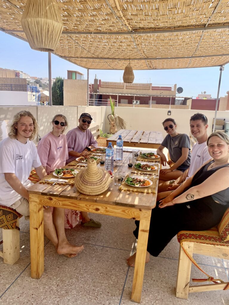 We serve delicious Moroccan cuisine prepared with fresh, local ingredients. Start your day with a nourishing breakfast. Take lunch to the beach and refuel after your first surf session. Join us for daily community dinners where you’ll taste traditional dishes like tajine or couscous. Incredible flavors of Morocco in every bite!